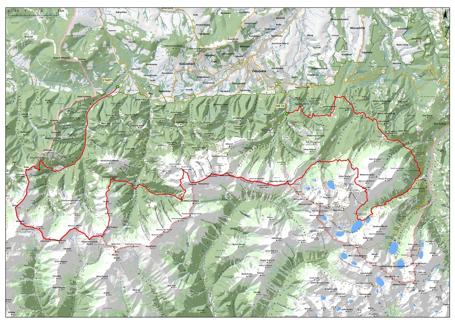 Start odbędzie się na Siwej Polanie, meta – w Kuźnicach. Zadaniem zawodników będzie pokonanie trasy Siwa Polana – Grześ – Rakoń – Wołowiec – Starorobociański Wierch – Ornak – Hala Ornak Chuda Przełączka – Czerwone Wierchy – Kasprowy Wierch – Hala Gąsienicowa – Krzyżne – Dolina Pięciu Stawów Polskich – Wodogrzmoty Mickiewicza – Polana Waksmundzka – Polana Kopieniec – Kuźnice.